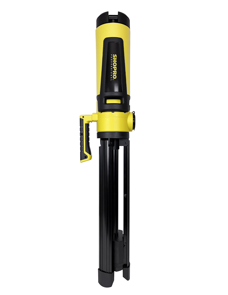 - Heavy-duty tripod base for stability on uneven surfaces